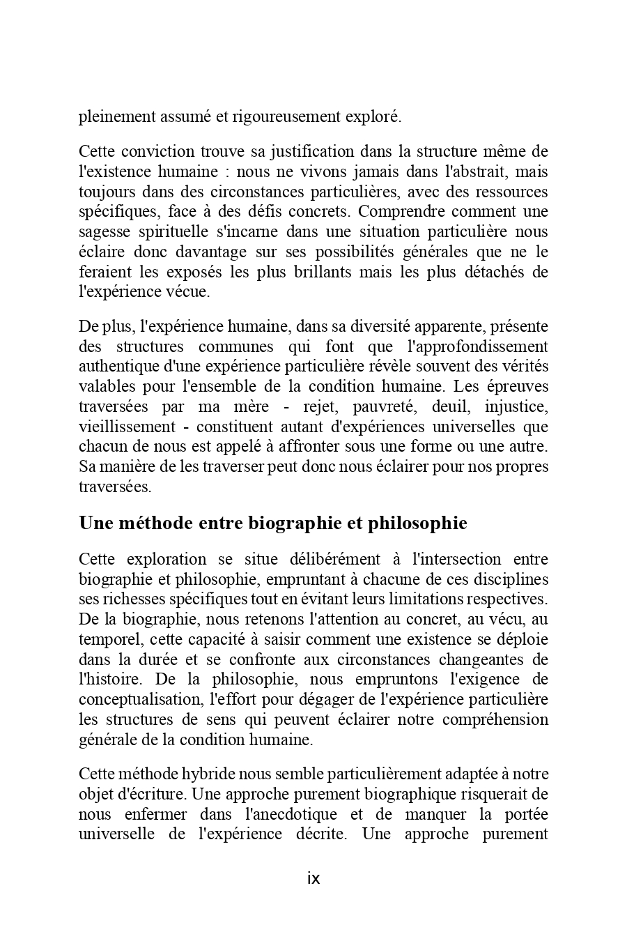 Au fond, ce livre suggère que la sagesse ne tombe pas du ciel ; elle naît souvent de l’épreuve, du chagrin et d’un amour indéfectible. Chaque page rend hommage à une femme qui, malgré le rejet familial, la pauvreté et la perte, n’a jamais renoncé à sa conviction que la présence de Dieu est la plus forte dans le silence.